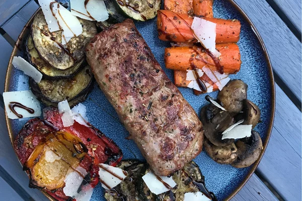 - Surf & Turf Rinderfilet mit Garnelen mit mediterranem Gemüse 38,00 €