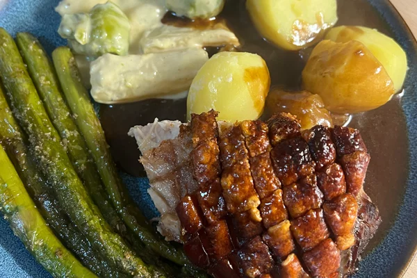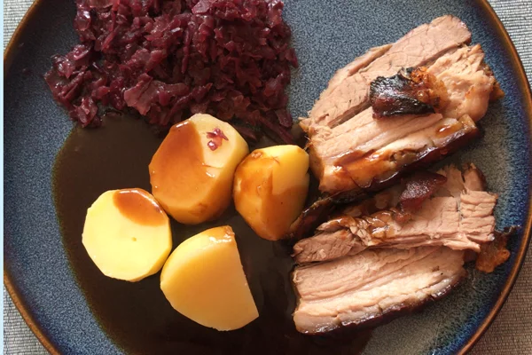 - Schweine-Krustenbraten mit Rahmgemüse und Kartoffeln 18,50 €